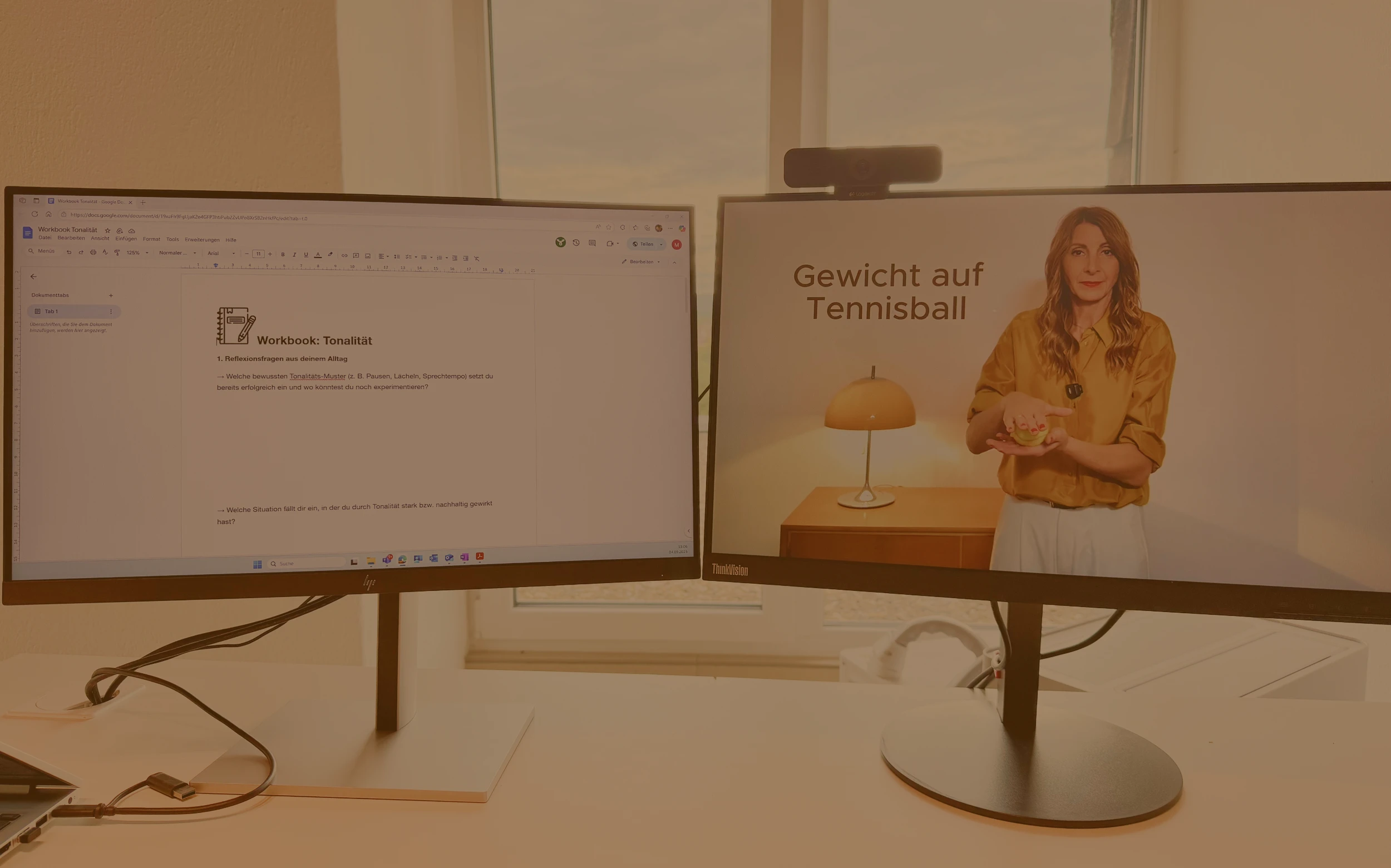 In 7 x 60 Minuten 1:1 Online-Sessions arbeiten wir beispielsweise an Rhetorik, Stimme, Körpersprache, Mindset und Gesprächsführung. Zusätzlich erhältst du Material und Workbooks zum eigenständigen Lernen.